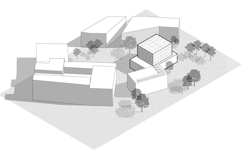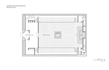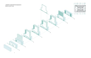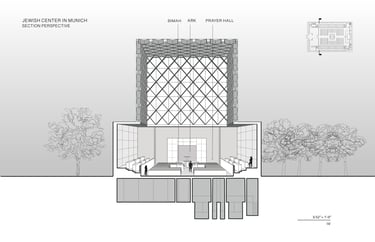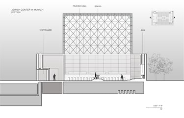 This semester long precedent study closely examined The Jewish Center in Munich designed by Wandel Hoefer Lorch & Hirsch. Through in-depth research and analysis of existing drawings, a detailed digital model of the space was developed, serving as a foundation for generating building plans, sections, and axonometric drawings.