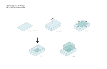 Various aspects of the building were explored through a series of diagrams, illustrating the overall form of the Jewish Center and spatial qualities of its interior.
