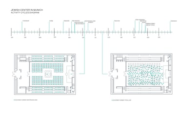 A series of architectural drawings and diagrams created for The Jewish Center in Munich, designed by Wandel Hoefer Lorch & Hirsch in 2007.