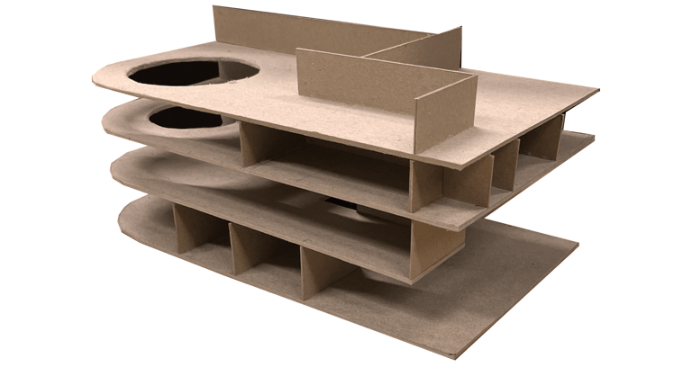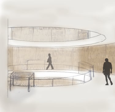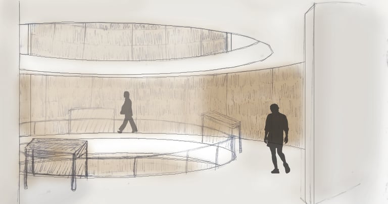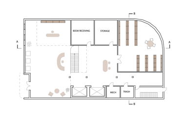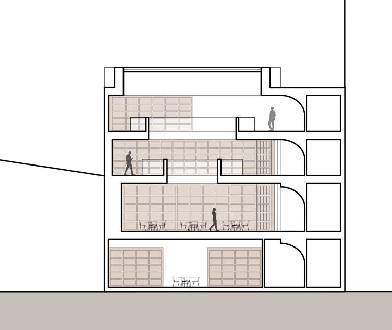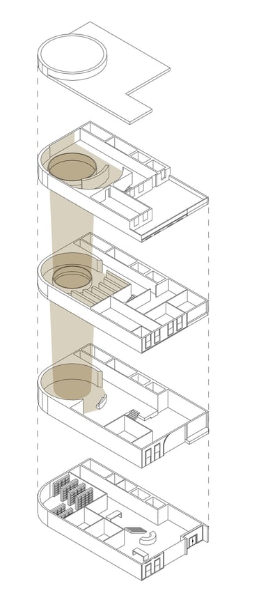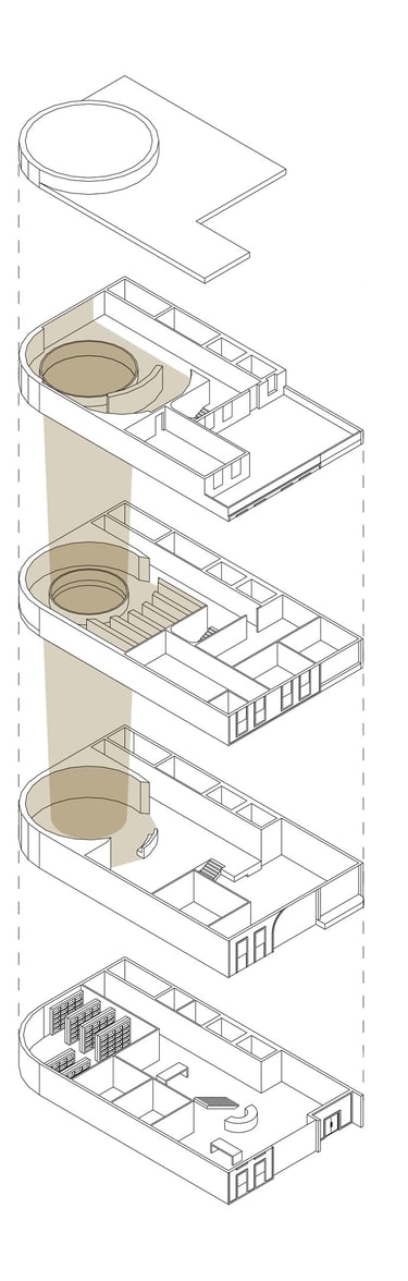 The main concept of this design centers around a cone shaped reading room extending up 3 stories, with balconies on the top 2 floors, allowing for natural light from the skylight and views of the main space from each floor.